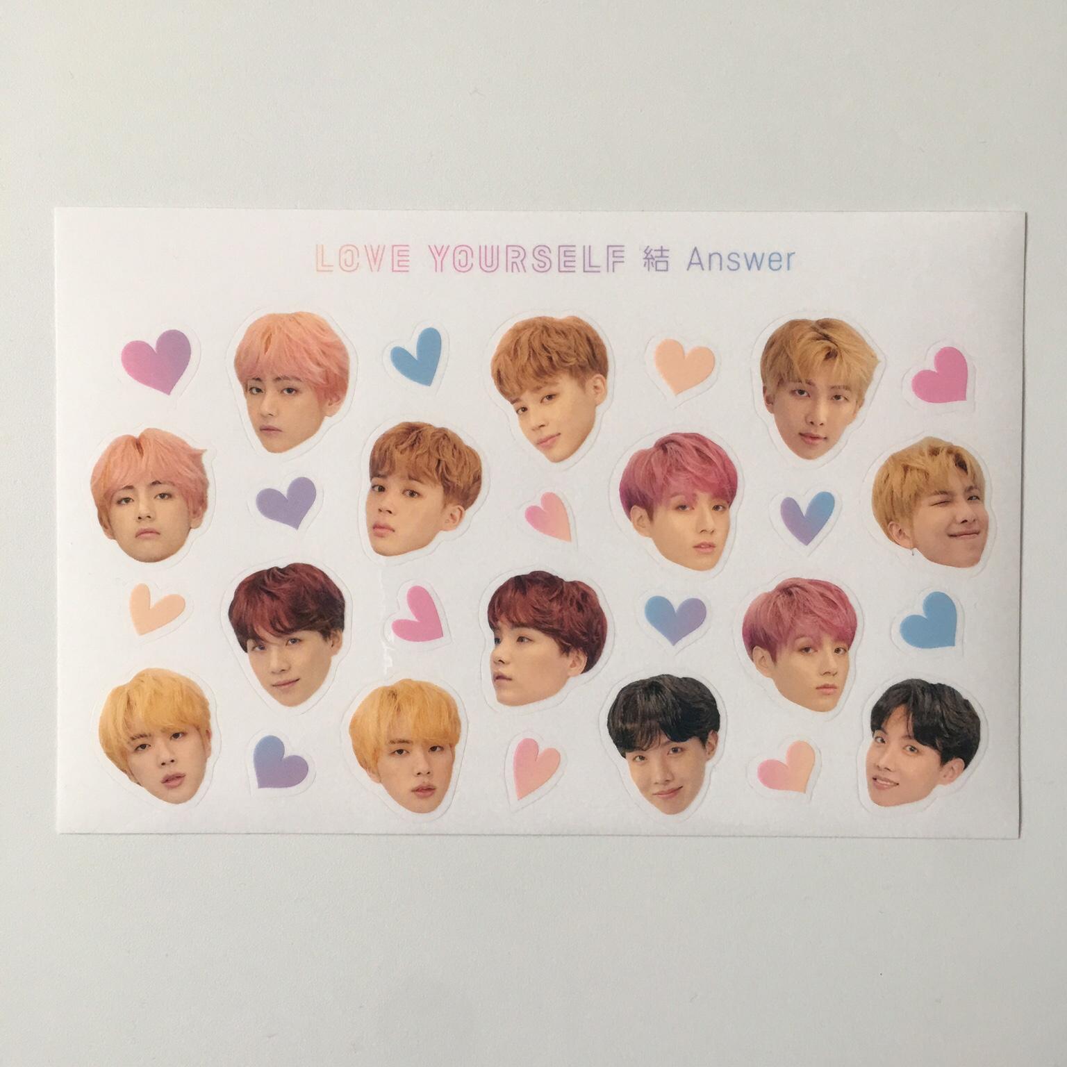 UNBOXING BTS Love Yourself Answer 'L' Version, Hey guys I'm back with the unboxing of my L version of love yourself answer by BTS. What version, photo card, and poster did you . If you discover this site serviceableness, please support us by sharing this posts to your preference social media accounts like Facebook, Instagram and so on or you can also Save this blog page with the title Bts Love Yourself Answer Stickers by using Ctrl + D for gadgets a laptop with a Windows operating system or Command + D for laptops with an Apple operating system. If you use a smartphone, you can also use the drawer menu of the browser you are using. Whether it's a Windows, Mac, iOS or Android operating system, you will still be able to bookmark this web.